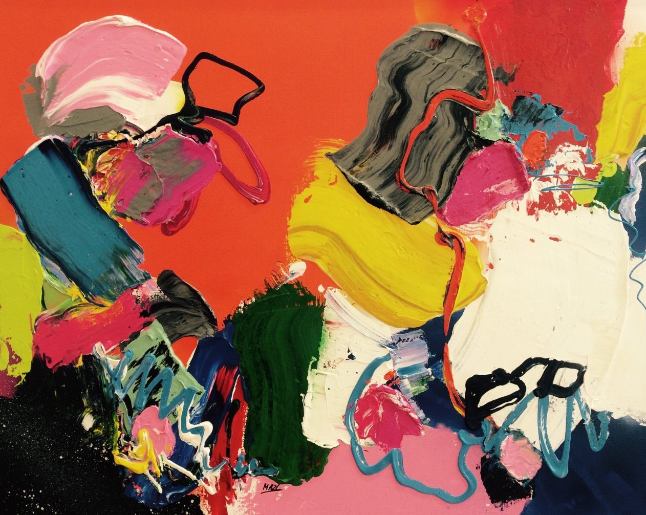 Acryl / mixed op linnen - abstract expressief werk - inclusief baklijst - kleurrijk
