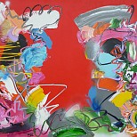 Acryl / mixed op verpakkingskarton (honingraat) - abstract expressief werk - kleurrijk - prijs is per stuk
