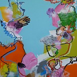 Een globale impressie van het schilderij "Little Talks" 100x80cm.