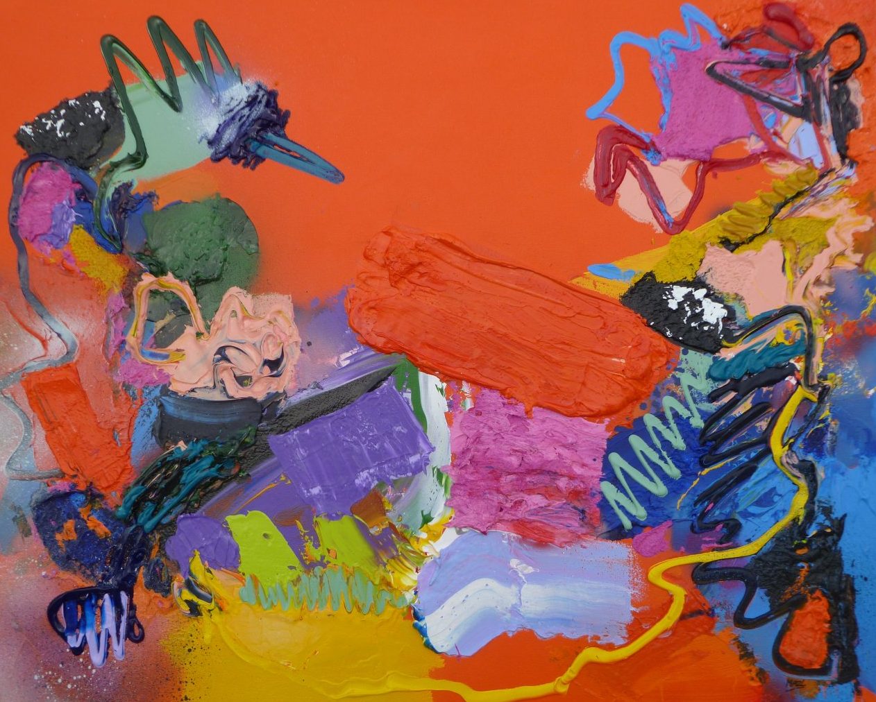 Acryl / mixed op linnen - abstract expressief werk - inclusief baklijst - kleurrijk