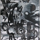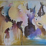 Een globale impressie van het schilderij "Zonder titel" 70x70cm.