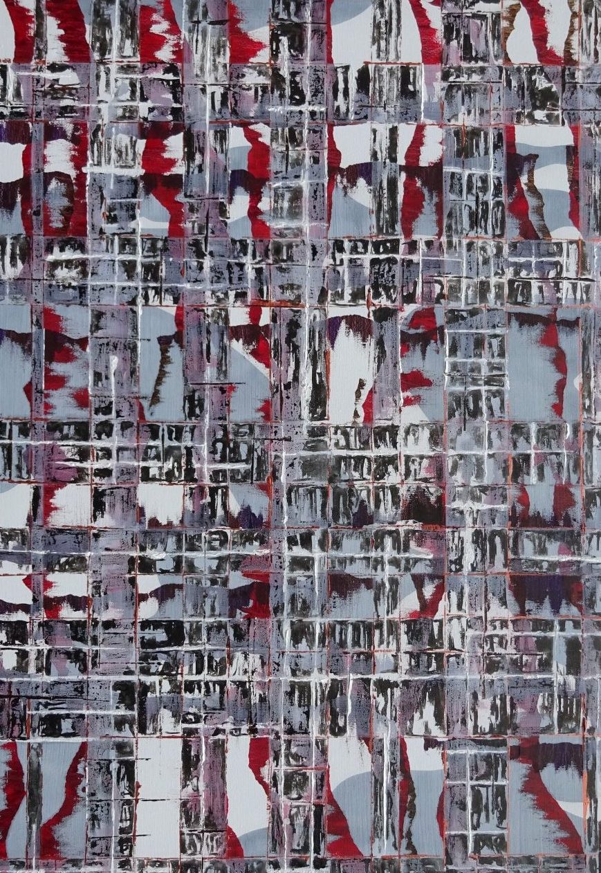 Abstract schilderij uitgevoerd in olieverf en inkt op linnen