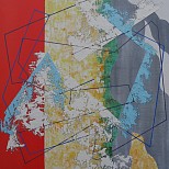 Een globale impressie van het schilderij "Samenhang" 100x100cm.