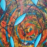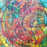 Een globale impressie van het schilderij "Faces" 60x60cm.