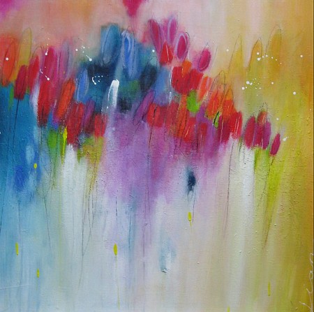 Een globale impressie van het schilderij "Midsummer" 70x70cm.