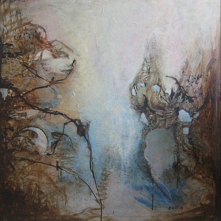 Een globale impressie van het schilderij "Zonder titel" 80x80cm.