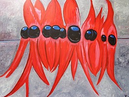 Een globale impressie van het schilderij "Bloemvlammen" 120x80cm.