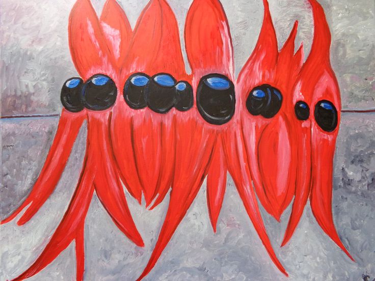 Olieverf op doek ontstaan uit foto van bloeiende grote planten in Brazilie