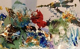 Een globale impressie van het schilderij "Flowerpower2" 120x60cm.