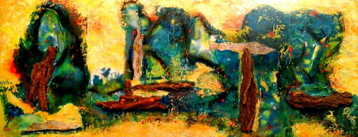 Een globale impressie van het schilderij "Geen titel" 100x40cm.