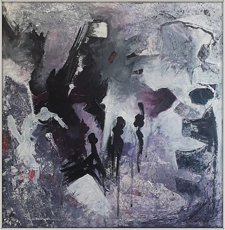 Een globale impressie van het schilderij "Grijze zone" 50x50cm.