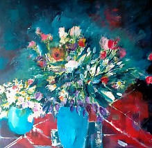 Een globale impressie van het schilderij "Stilleven" 100x100cm.