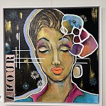 Celebrate Life : mixed media met witte baklijst.,ophangsysteem en afgewerkt met satin lak. Interesse in dit kunstwerk.